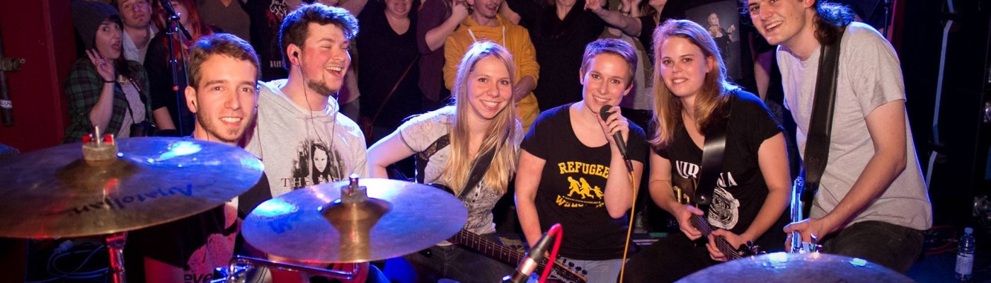 Band Cut Your Strings, Jim! – junger Female Fronted Synthie-Rock aus Mainz! Nina | Vocals Lavinia | Guitar Mäthi | Bass Max | Synthies Stefan | Drums